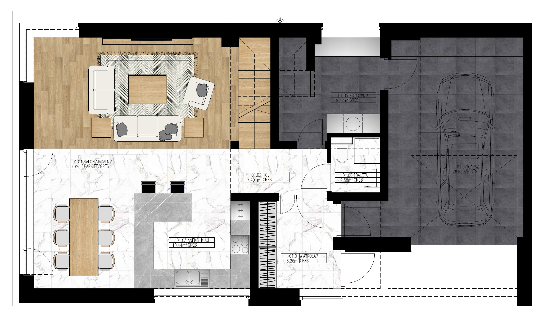 Pierwszy etap inwestycji to budowa ośmiu budynków mieszkalnych jednorodzinnych, wolnostojących, dwukondygnacyjnych z garażem, wraz z ciągiem pieszo-jezdnym stanowiącym dojście i dojazd do budynku.