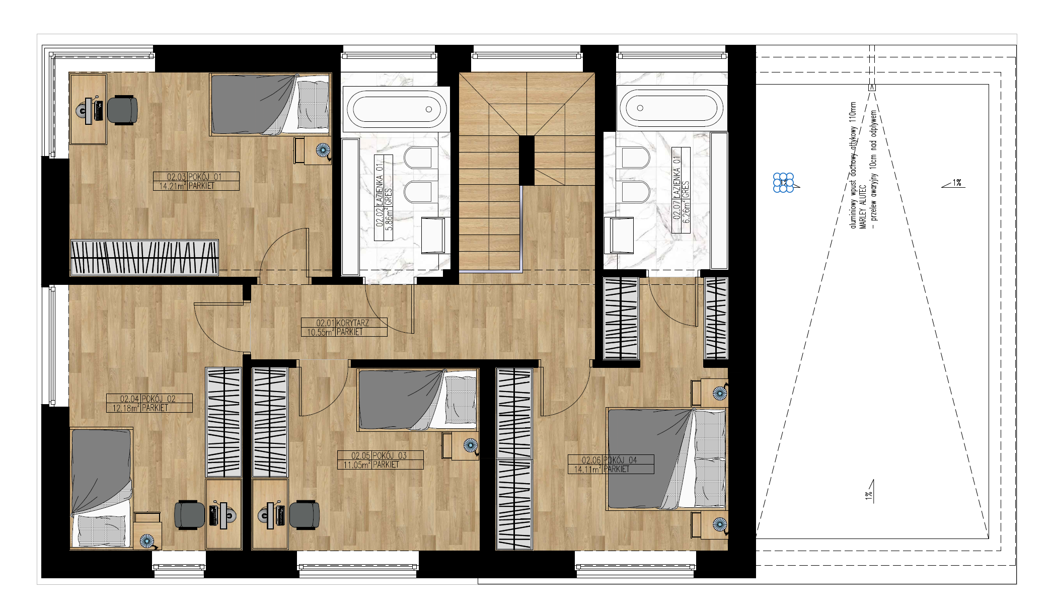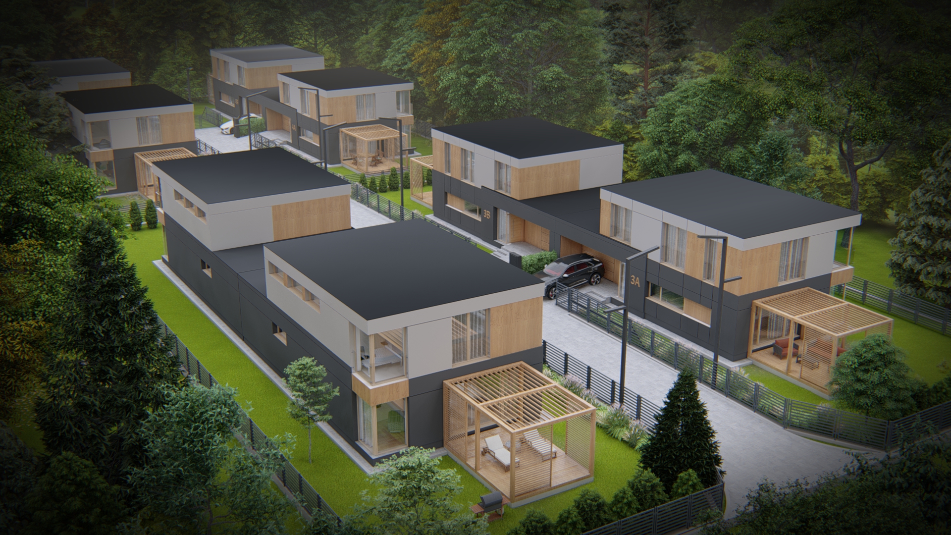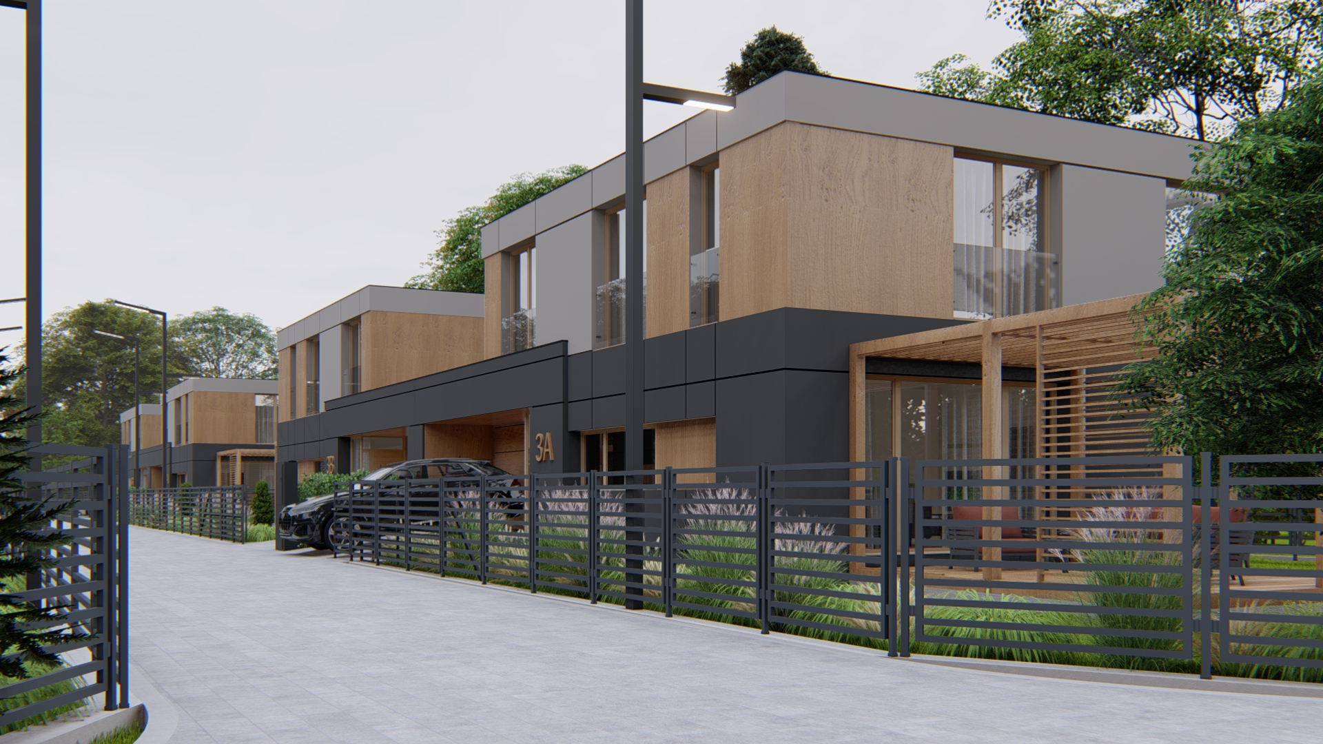 Pierwszy etap inwestycji to budowa ośmiu budynków mieszkalnych jednorodzinnych, wolnostojących, dwukondygnacyjnych z garażem, wraz z ciągiem pieszo-jezdnym stanowiącym dojście i dojazd do budynku.